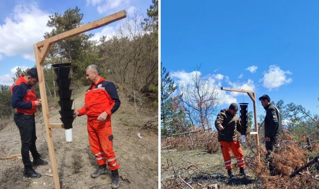 Mudurnu Orman İşletme Müdürlüğü, orman sağlığını tehdit eden, 'On İki Dişli Çam Kabuk Böceği' tehlikesine karşı ormanlık alanlara yerleştirilen feromon tuzakları sayesinde böcekleri yakalayarak imha ediyor.