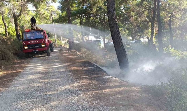 Antalya'nın Manavgat ilçesinde ormanlık alanda çıkan yangın vatandaşların müdahalesi ile büyümeden söndürüldü. İtfaiye ekipleri alanda soğutma çalışması yaparken yanan alanda cam şişelerin çokluğu dikkat çekti.