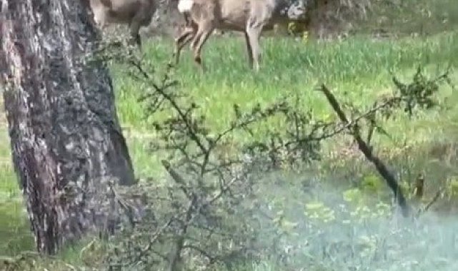 Görüntülerde, karacaların ağaçlar arasında koşarak gözden kaybolduğu anlar yer aldı.