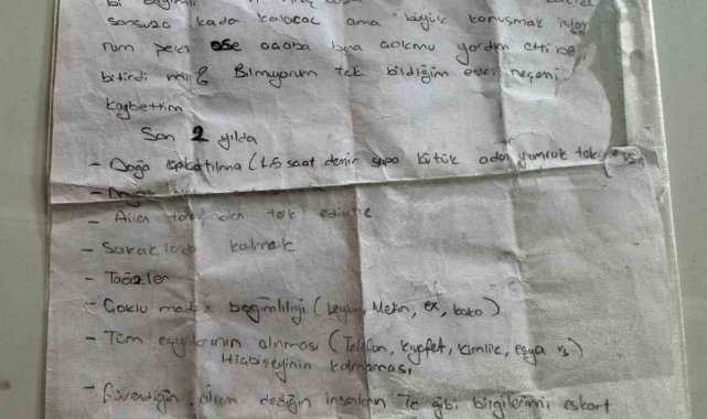 Üniversitede okumak için memleketi Mersin'den Aydın'a gelişinin üzerinden bir yıl geçtiğini belirterek mektubuna başlayan Teslime Hanedan'ın mektupta bağımlı olduğunu, ardından kuryelik yaptığını ve gördüğü işkence ve tacizlerin eski neşesini kaçırdığını belirttiği öğrenildi. Güvendiği insanlar tarafından kimliği dahil her şeyinin alındığını belirten Teslime'nin daha sonra eskort adı altında çalışmak zorunda kaldığını belirttiği mektubun bazı gerçekleri ortaya çıkarmasının beklendiği öğrenildi.