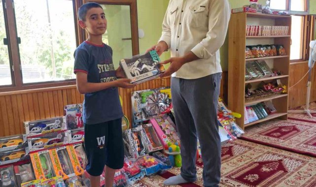 Yaz tatilinde camiye gelen çocukların hem ibadetlerini yerine getirmeleri hem de Kur'an-ı Kerim eğitimi almaları için büyük emek veren genç imam, her ders sonunda başarılı olan öğrencileri oyuncak ve çeşitli hediyelerle ödüllendiriyor.