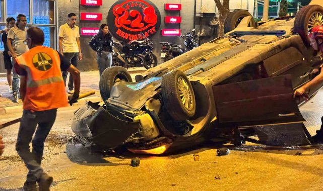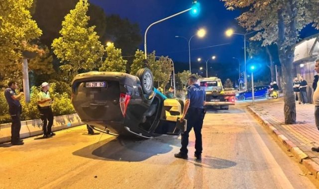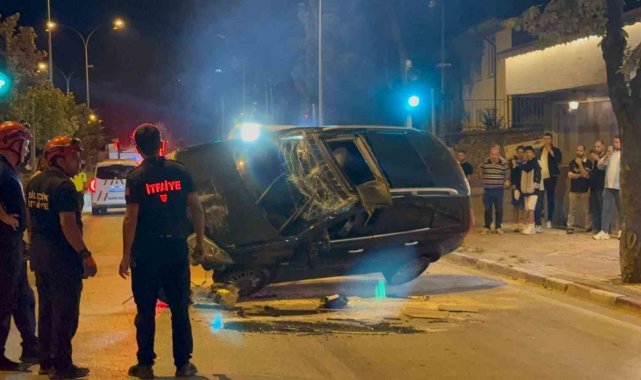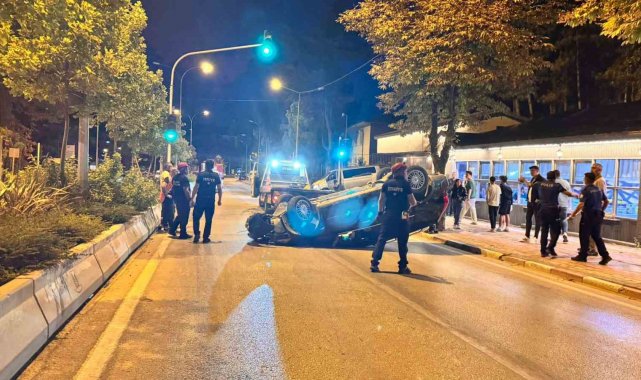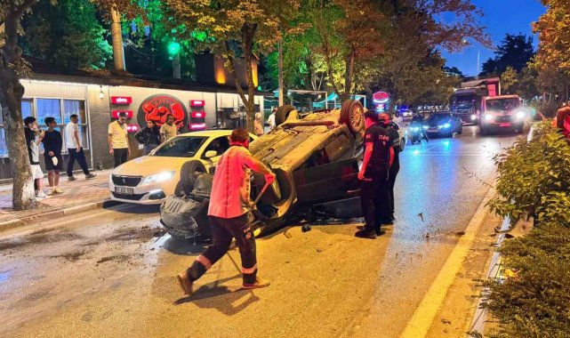 Orta refüje çarpan otomobil takla attı: 1 yaralı