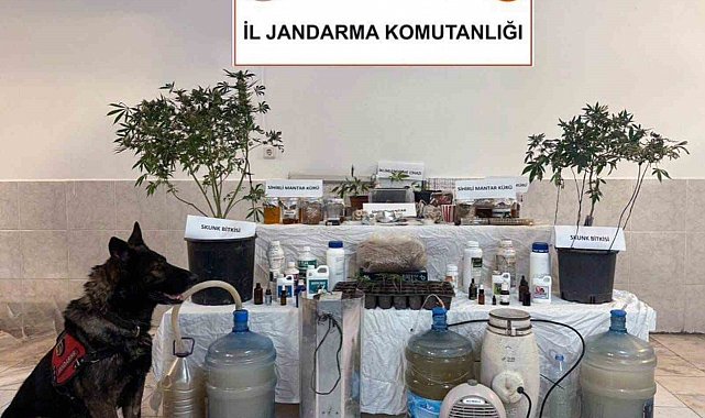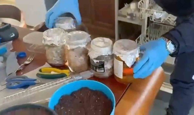 Ortaca Tepearası Mahallesinde ikamet eden B.Ç.K. isimli şahsın ikametinde uyuşturucu madde imal ve ticareti yaptığı bilgisinin alındı. İl Jandarma Komutanlığı ekipleri tarafından şahsın ikametinde arama yapıldı. Yapılan aramada, 6 bin 112 gram sihirli mantar türü (psilosibin), 27 kök kenevir bitkisi, 49 gram sihirli mantar (magic mushroom), hassas terazi, 17 parçadan oluşan iklimlendirme ve ışık sistemi, 45 ml. Kenevir yağı, 7 gram kenevir tohumu, 57 litre kaçak alkol ve kurusıkı tabanca ile şarjör ele geçiridi.