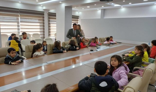 Şehit Asteğmen Ünal Daka İlkokulu anasınıfı öğrencileri ve öğretmenleri Ortaca Kaymakamı Kenan Aktaş'ı makamında ziyaret etti.