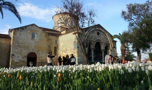 Trabzon'da 2013 yılında müzeden camiye dönüştürülerek ibadete açılan Ayasofya Camii bahçesindeki çiçeklerle güzel bir görüntü oluştururken ziyaretçiler tarafından oldukça beğenildi.