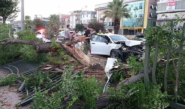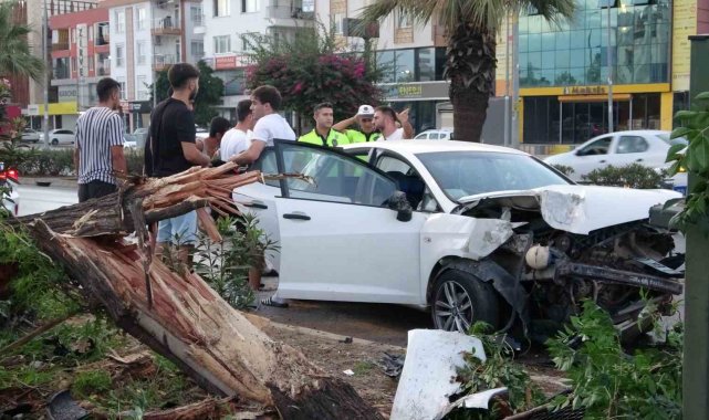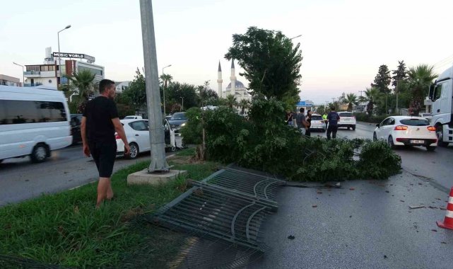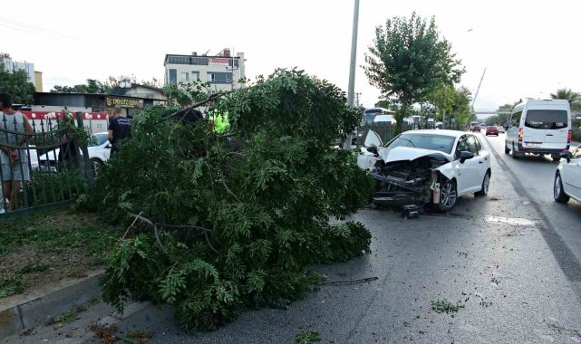 Antalya'da direksiyon hakimiyetini kaybeden sürücü orta refüjde bulunan ağaç ve bariyere çarptı. Çarpmanın şiddetiyle karşı şeride yıkılan ağaç, 2 aracın daha kaza yapmasına neden oldu. Kazada şans eseri kimsenin burnu bile kanamadı.