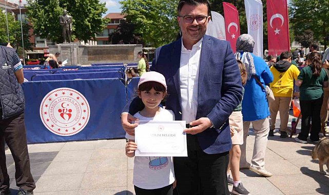 Gençlik ve Spor İl Müdürü İsa Yazıcı, etkinliğe katılan çocuklara katılım belgesi takdim etti.