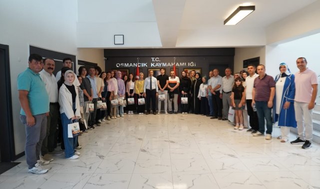 Osmancık Kaymakamlığı toplantı salonunda gerçekleştirilen törende, ükseköğretim Kurumları Sınavı'nda gösterdikleri üstün başarıyla dereceye giren öğrenciler, aileleri ve okul yöneticileri bir araya geldi. Osmancık Kaymakamı Furkan Duman, ilk 30 bin içerisine giren öğrencileri tek tek tebrik ederek ödüllerini takdim etti. Öğrencilerin bu başarısının hem aileleri hem de ilçe için büyük bir gurur kaynağı olduğunu belirten Duman, öğrencilere bundan sonraki yükseköğrenim hayatlarında da başarılar diledi.