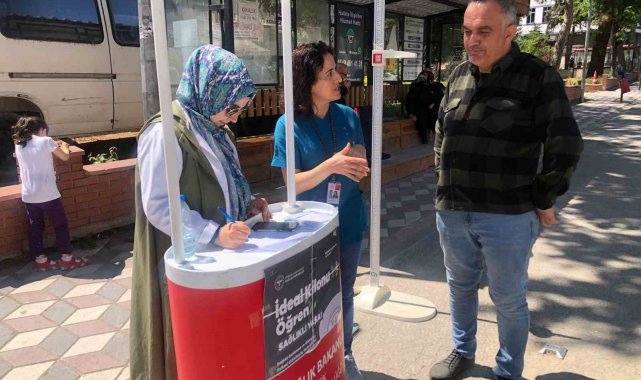 Sağlık Bakanlığı tarafından başlatılan "İdeal Kilonu Öğren, Sağlıklı Yaşa" projesi kapsamında vatandaşların boy, kilo ve vücut kitle indeksi (VKİ) ölçümleri gerçekleştiriliyor. Osmaneli ilçesinde vatandaşların kalabalık olduğu mekanlarda boy ve kilo ölçümü yapıldı. İlçe Toplum sağlığı personellerinden Aysun Suna ve Fazilet Doğan Çevikel hemşirelerin kurduğu stantta vatandaşların beden kitle indeksi hesaplandı. Hemşirelerin ölçüm sonrası vatandaşlara sağlıklı beslenme ve hareketli yaşam konusunda bilgilendirme yaptı. Toplum sağlığı personelleri "İdeal Kilonu Öğren, Sağlıklı Yaşa" projesi kapsamında vatandaşların boy, kilo ve vücut kitle indeksi (VKİ) ölçümlerinin 10 Temmuz'a kadar ilçenin çeşitli noktalarında devam edeceğini belirterek, "Ülkemizde artan obeziteye karşı farkındalık oluşturmak amacıyla bu çalışmalarımızı yürütmeye devam edeceğiz. İnsanlara boy ve kilo ölçümlerini gerçekleştirerek beden kitle indeksleri hakkında bilgi veriyoruz. Riskli grupta gördüğümüz kişilere sağlıklı hayat merkezlerine başvurmaları için bilgi veriyoruz" dediler.