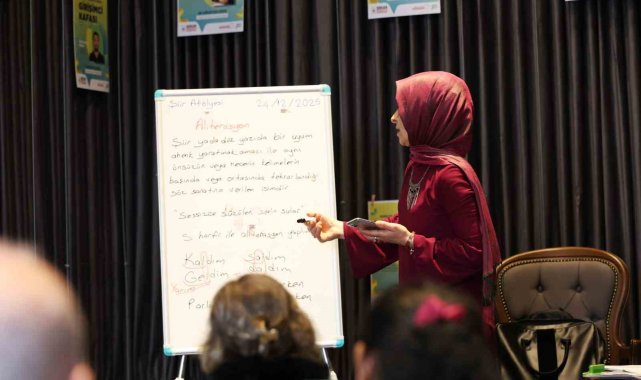 Şiir yazmaya gönül verenlerin yazdıkları şiirleri kural ve tekniğine uygun bir şekilde yazmasını öğrenmesi için açılan 'Şiir Atölyesi'nde geleceğin şair adayları yetişiyor. Gençlik ve Girişimcilik Merkezi'nde düzenlenen Şiir Atölyesi'ne gelen amatör anlamda şiir yazan kursiyerler, merkezde şiirin 6 dalının tüm teknik detaylarını ayrıntılarıyla birlikte öğrenme imkanı buldu. 3 hafta devam eden 'Şiir Atölyesi'nin son dersine katılan kursiyerler öğrendikleri bilgilerle teknik anlamda birer dörtlük yazarak kursu verimli bir şekilde tamamladığını herkese gösterdi.