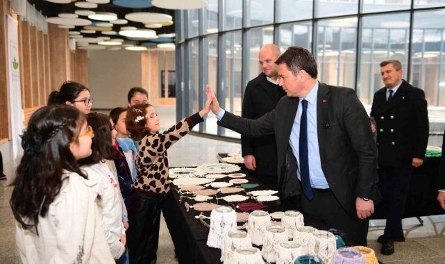 Serginin açılışını gerçekleştiren Başkan Aydın, yıl boyunca emek veren çocuklara teşekkür sertifikası verdi. Eserleri yakından inceleyen Başkan Aydın, hazırladıkları eserler için çocukları tebrik etti.