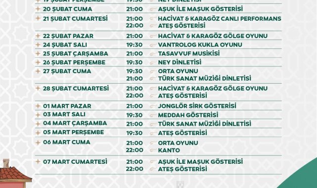 Özellikle çocuklar için hazırlanan kukla oyunları, gölge oyunları ve interaktif gösteriler, ailelerin Ramazan akşamlarını keyifle geçirmesine imkan tanıyacak. Etkinlik alanları, hem nostaljik Ramazan eğlencelerini yaşatacak hem de yeni nesillere kültürel mirası tanıtacak.