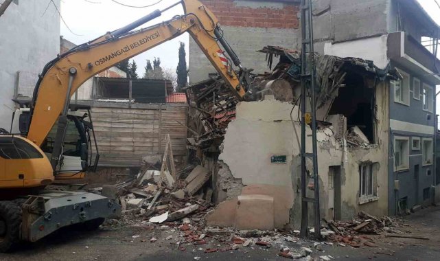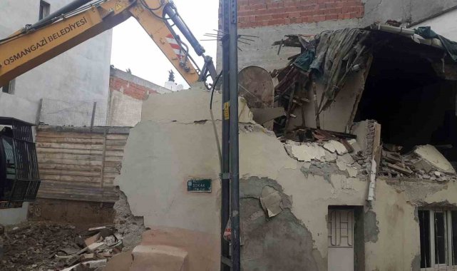 Osmangazi Belediyesi, İvazpaşa Mahallesi'nde can ve mal güvenliği açısından tehlike arz eden metruk binayı yıktı.