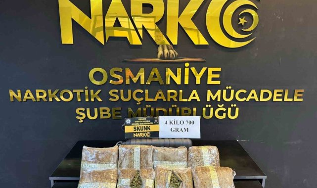 Osmaniye İl Emniyet Müdürlüğü ekipleri tarafından uyuşturucu ile mücadele kapsamında yürütülen çalışmalar çerçevesinde kent genelinde şüpheli görülen 3 ayrı araç durduruldu. Araçlarda yapılan detaylı aramalarda, toplam 4 kilo 700 gram skunk ve 390,70 gram metamfetamin maddesi ele geçirildi.