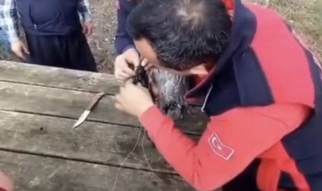 Olay, Karatepe Aslantaş Milli Parkı içerisindeki mesire alanında meydana geldi. Ağaca takılı halde bir kargayı fark eden vatandaşların ihbarı üzerine, Kadirli Belediyesi itfaiye ekipleri bölgeye sevk edildi. Ağaca tırmanan ekipler, oltaya takıldığı belirlenen kargayı uzun uğraşlar sonucu bulunduğu yerden kurtardı. Ardından büyük bir hassasiyetle kuşun vücuduna saplanan kanca çıkarıldı.