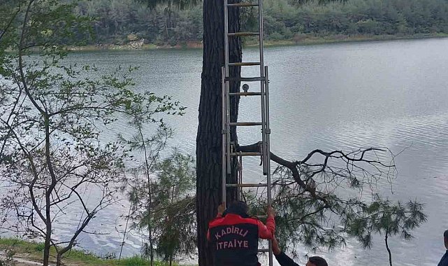 Osmaniye'nin Kadirli ilçesinde ağaca takılan karga, itfaiye ekiplerinin müdahalesiyle kurtarılarak yeniden doğaya salındı.