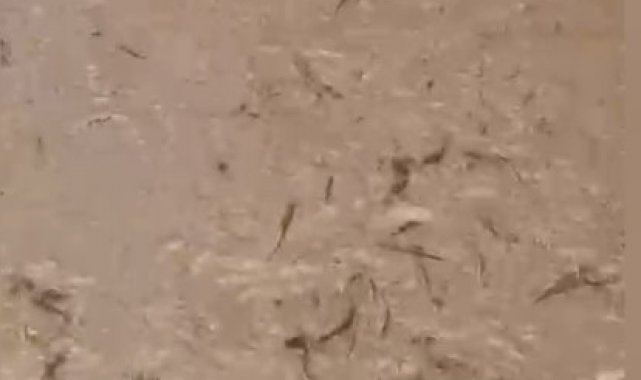 Osmaniye'nin Bahçe ilçesi Taşoluk mevkiinde baraj kapaklarının açılması sonucu su seviyesinin aniden düşmesiyle yüzlerce balık telef oldu. O anlar bir vatandaşın cep telefonu kamerasına yansıdı.