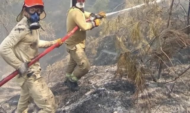 Bölgede ekiplerin soğutma çalışması sürerken yaklaşık 2 hektarlık alanın zarar gördüğü bildirildi.