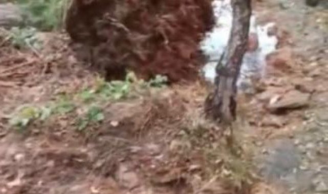 Osmaniye'de yağmurla birlikte etkili olan fırtına nedeniyle Düziçi ilçesinde ağaçlar köklerinde söküldü.