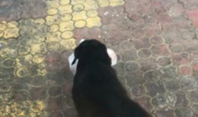 Osmaniye'de kasaptan et alan köpek yüzleri gülümsetti