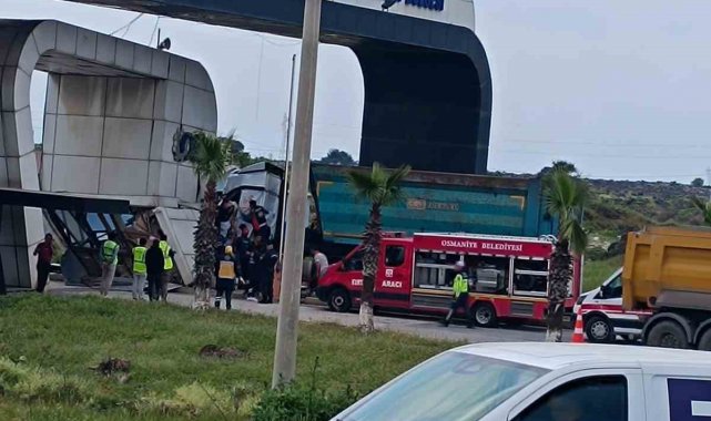 Osmaniye Organize Sanayi Bölgesi girişinde meydana gelen trafik kazasında, sürücüsünün direksiyon hakimiyetini kaybettiği tır gişe kabinine çarptı. Kazada tır sürücüsü yaralandı.