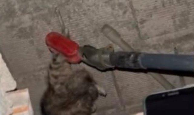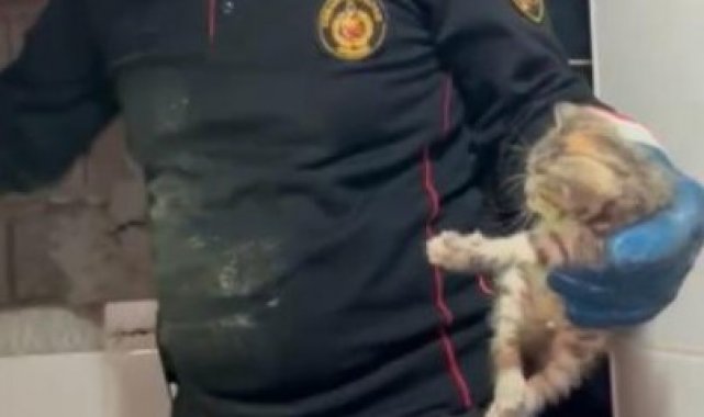 Osmaniye'de mahsur kalan yavru kediyi itfaiye ekipleri kurtardı