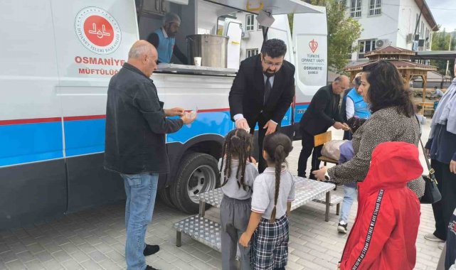 Osmaniye İl Müftülüğü ile Türkiye Diyanet Vakfı (TDV) Osmaniye Şubesi, Issızca köyü Şehit Ahmet Çalık Ortaokulu'nda öğrenim gören öğrencilere sabah saatlerinde sıcak çorba ikramında bulundu.