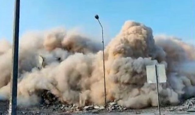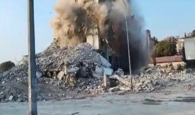 Osmaniye'de orta hasarlı bina tek dokunuşta yıkıldı