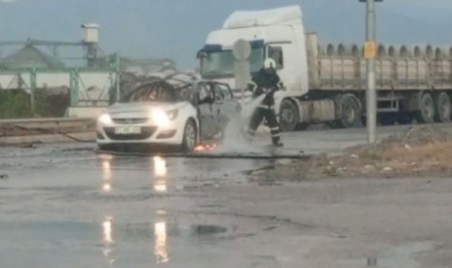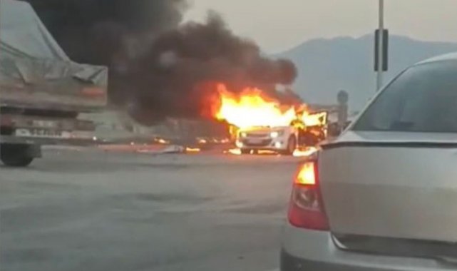 Osmaniye'de ışıklı kavşakta bekleyen bir otomobilde yangın çıktı. Alev topuna dönen araç itfaiyenin müdahalesiyle söndürülürken, şans eseri yaralanan olmadı.