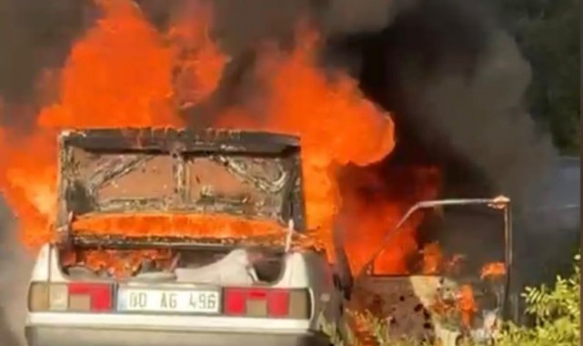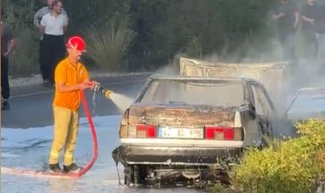 Osmaniye'de otomobil yangını ormana sıçramadan söndürüldü