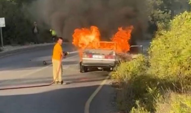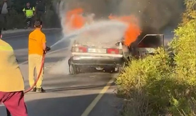 Osmaniye'nin Zorkun Yaylası yolunda bir otomobilde çıkan yangın, itfaiye ekiplerinin zamanında müdahalesiyle ormana sıçramadan söndürüldü.