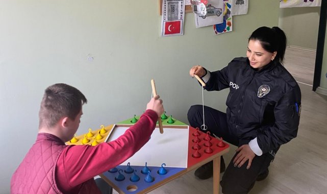 Ziyaretin sonunda özel öğrenciler, polis ekiplerine çiçek takdim ederek Polis Haftası'nı kutladı.