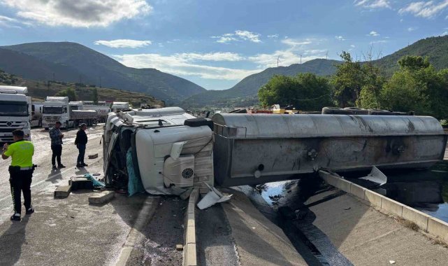 Osmaniye'nin Bahçe ilçesinde petrol yüklü tanker devrildi. Kazada sürücü yaralandı.