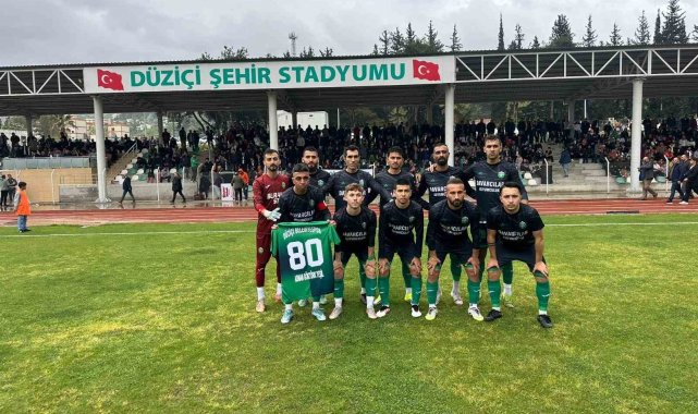 Öte yandan, Düziçi Belediyespor futbolcuları da sahaya anlamlı bir mesajla çıktı. Oyuncuların, üzerinde Adnan Göktürk Yeşil'in isminin ve "80" numarasının yer aldığı formalarla sahada yer alması duygusal anlar yaşattı.
