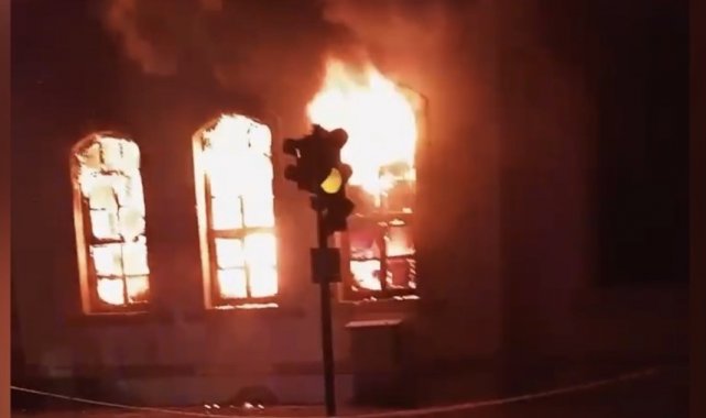 Osmaniye'de restorasyonu yapılan asırlık okulda çıkan yangın söndürüldü