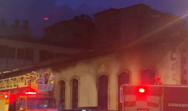 Osmaniye'de deprem sonrası restorasyon çalışmaları devam eden tarihi okul binasında çıkan yangın maddi hasara yol açtı.