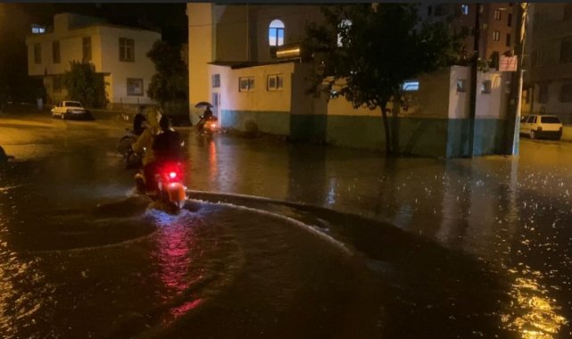 Meteoroloji Genel Müdürlüğü'nün uyardığı kentte akşam saatlerinde etkili olan sağanak yağış hayatı felç etti. Yağmur nedeniyle ana cadde ve sokaklarda su birikintileri oluştu, bazı ev ve iş yerlerini su bastı, düşen yıldırım bir vatandaşın cep telefonu kamerasına yansıdı.