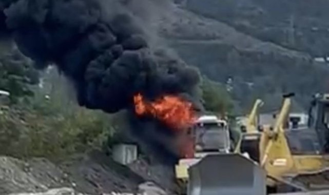 Osmaniye'de şantiyede iş makinasında çıkan yangın söndürüldü