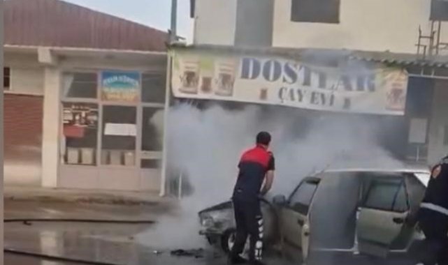 Osmaniye'de seyir halindeki otomobil yandı