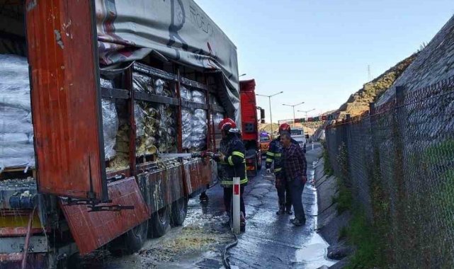 Osmaniye'de seyir halindeki soya yüklü tırda yangın çıktı