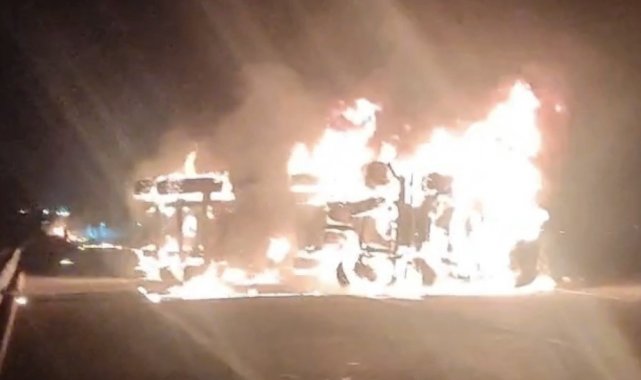 Osmaniye'de seyir halindeki tır alev alev yandı.