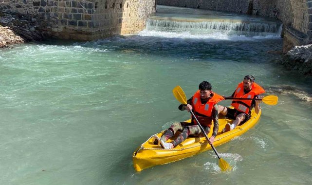 Osmaniye'nin Düziçi ilçesinde, uzun süredir devam eden kuraklık nedeniyle sessizliğe bürünen Sabun Çayı, son yağışlarla birlikte eski ihtişamına kavuştu. Suyun debisinin yükselmesini fırsat bilen rafting tutkunları, ilçede unutulmaz bir spor şölenine imza attı. Uzun yıllardır kuruma noktasına gelen Sabun Çayı'nda debinin yükselmesi üzerine harekete geçen 12 sporcu, 6 botla nehre indi. Sabun Çayı Köprüsü'nde start verilen rafting etkinliğinde sporcular, yaklaşık 8 bin 400 metrelik parkur boyunca akıntıya karşı kürek çekti. Doğayla iç içe gerçekleştirilen etkinlikte zaman zaman zor anlar yaşanırken, sporcular parkuru profesyonel manevralarla kazasız tamamladı.