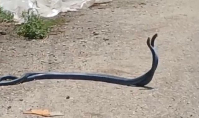 Osmaniye'nin Düziçi ilçesinde yol ortasında 2 yılanın çiftleşme dansı vatandaş tarafından kayıt altına alındı.