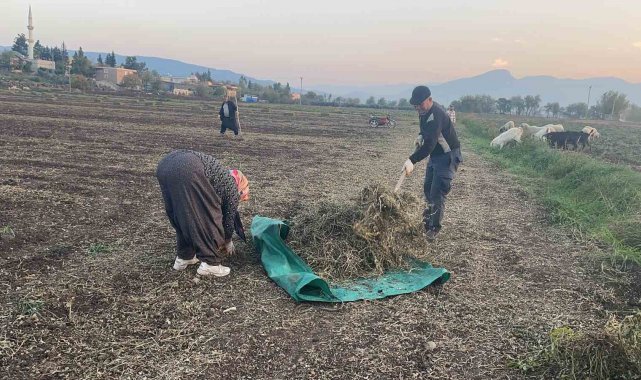 Türkiye'nin yer fıstığı üretiminde önemli bir yere sahip olan Osmaniye'de hasat sezonu tamamlandı. Hasadın ardından tarlalarda kalan yer fıstığı yaprakları, çiftçiler tarafından balyalayarak hayvan yemi olarak değerlendirilmeye başlandı.