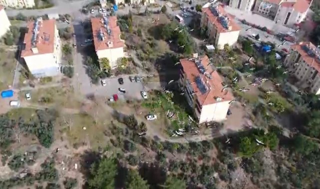 Dron ile de havadan görüntülen yüzlerce leylek güneye doğru göçünü sürdürdü.