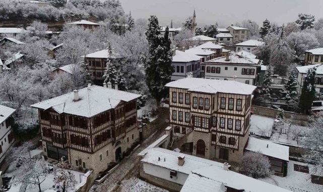 Osmanlı kenti Safranbolu'nun tarihi konakları beyaz örtüyle kaplandı