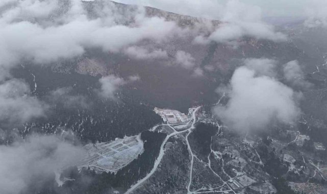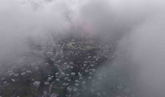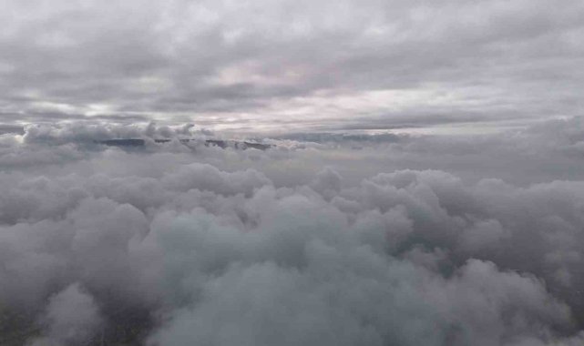 İlçenin yüksek kesimlerinde yer yer yoğun sisle birlikte ortaya çıkan kartpostallık görüntüler dron ile görüntülendi.