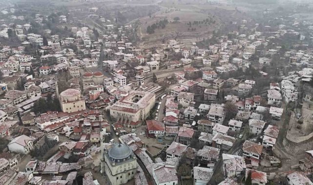 UNESCO Miras Listesinde yer alan Karabük'ün Safranbolu ilçesinde kar yağışı sonrası çatıları beyaza bürünen tarihi konaklar ve yapılar dron ile görüntülendi.