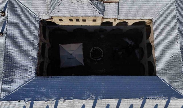 Karla kaplı tarihi yapılar dronla görüntülendi.