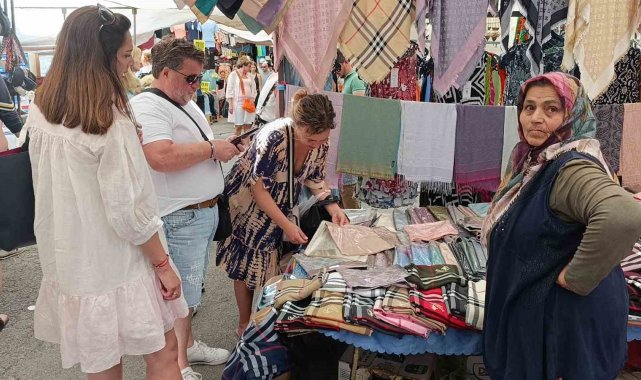Satışlardan duydukları memnuniyeti dile getiren pazarcı esnafı, "Turist yoğunluğu artık sezonun açıldığının en önemli göstergesi. İnşallah böyle devam eder ve güzel bir sezon geçiririz. Gerek esnaflar gerekse ülke olarak buna ihtiyacımız var. Eğer çok büyük aksilikler olmazsa bu yıl son yılların en güzel sezonunu geçireceğimize inanıyoruz. Yeni turizm sezonu ülkemize ve esnaflarımıza hayırlı olsun" ifadelerini kullandı. Pazarda çanta ve valiz satılan tezgahın girişindeki papağan ise, turistlerden ilgi görüyor. Tezgahın önünden geçen turistler, papağan ile fotoğraf çektirmeyi ihmal etmiyor.